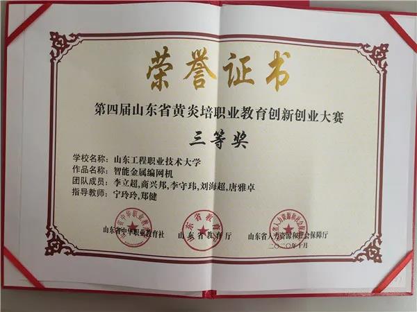 2020-11-17近期,第四屆山東省黃炎培職業(yè)教育創(chuàng)新創(chuàng)業(yè)大賽圓滿落幕。經(jīng)過(guò)決賽階段的激烈角逐,我校機(jī)械工程學(xué)院參賽的《智能金屬編網(wǎng)機(jī)》項(xiàng)目獲得三等獎(jiǎng),同時(shí)寧玲玲、鄭健老師榮獲“優(yōu)秀指導(dǎo)教師”稱號(hào)。本次大賽類別包括學(xué)生創(chuàng)新創(chuàng)業(yè)規(guī)劃大賽和教師創(chuàng)新創(chuàng)業(yè)指導(dǎo)大賽。7月份大賽正式啟動(dòng)以來(lái),全省共有160余所院...