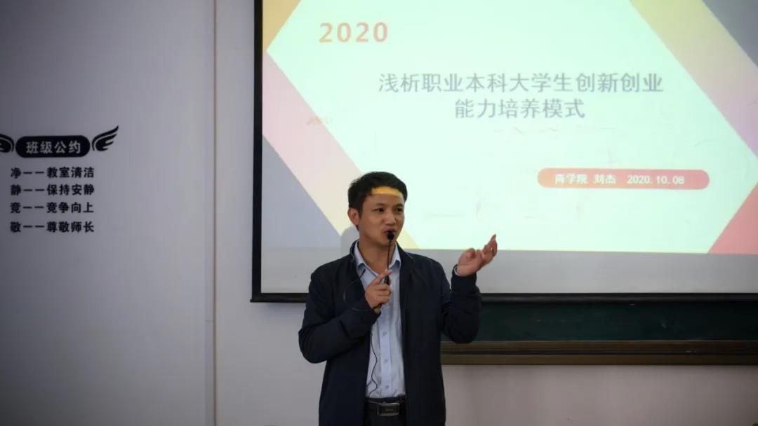10月8日下午,商學(xué)院于誠(chéng)基樓314室舉辦了“職業(yè)本科大學(xué)生創(chuàng)新創(chuàng)業(yè)能力培養(yǎng)模式”專題講座,由商學(xué)院執(zhí)行院長(zhǎng)劉杰擔(dān)任主講人。