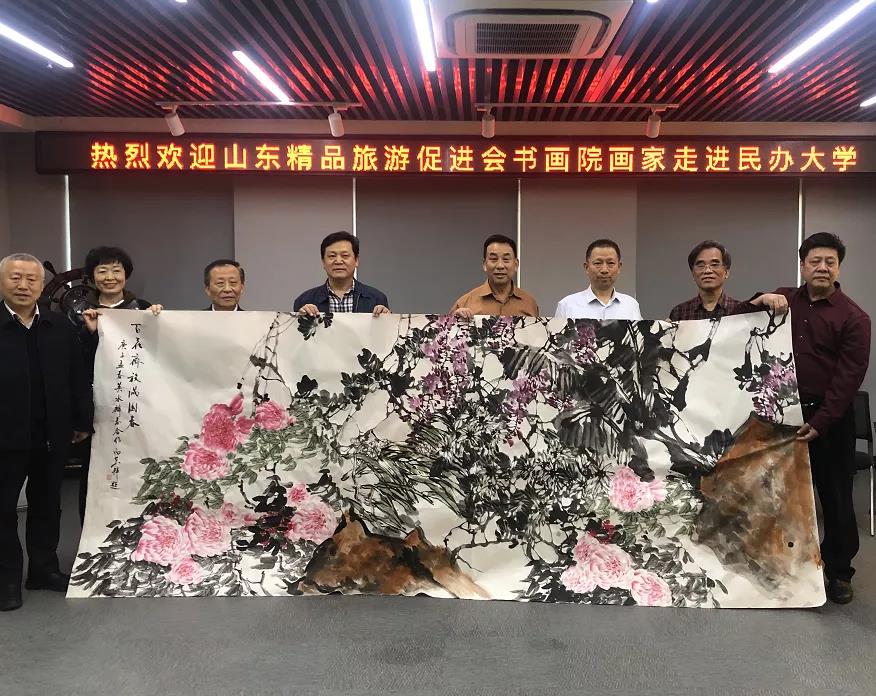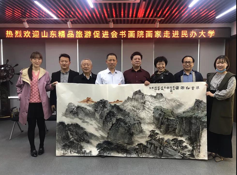來源: 發(fā)布日期:2020-04-24 17:20:00 為貫徹落實(shí)省委省政府文化惠民政策,按照省文旅廳開展的“第四屆文 化旅游惠民消費(fèi)季”工作部署,4月23日,省委原副秘書長、省旅促會專家咨詢委員會主任杜文彬,副會長董廷之、楊愛青、廖嘉寧及山東省精品旅游促進(jìn)會旅游書畫院著名書畫藝術(shù)家一行,走進(jìn)山東工程職業(yè)技術(shù)大學(xué),開展惠民文化活動。省旅促會副會長、三慶集團(tuán)董事長吳立春,旅游書畫院著名書畫家劉玉泉、趙英水、戴月、李向東、張樂毅、韓英偉、馬麟春、孫華進(jìn)、樊路明、董廷新、韓宏宇參加了此次活動。